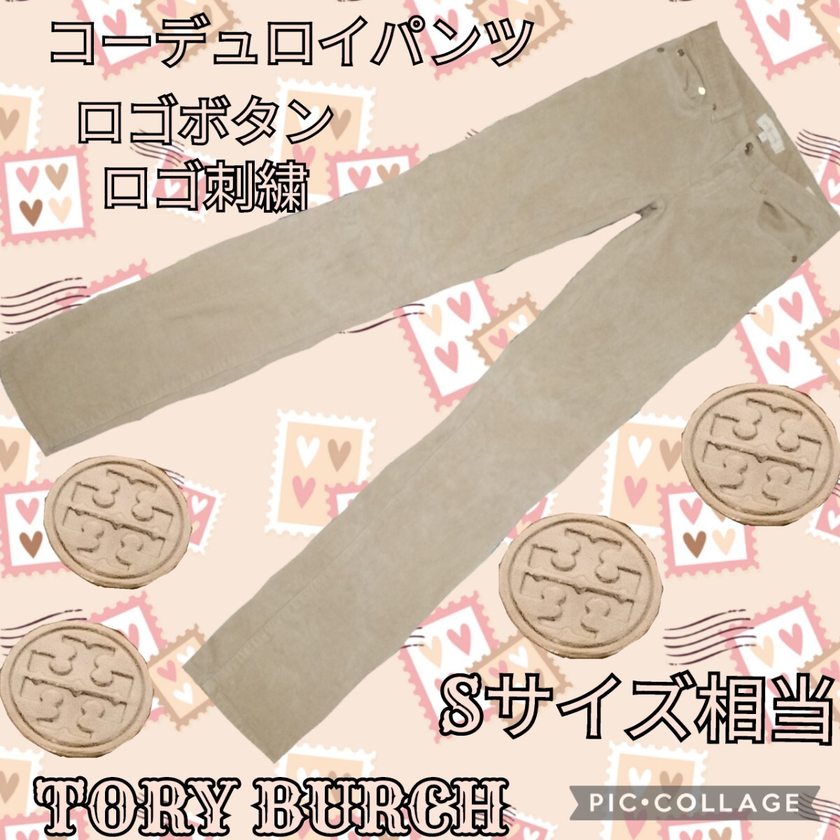 > TORY BURCH★トリーバーチ★スーパースキニージーンズ★ベージュ★ロゴ入り★コーデュロイ★ロゴボタン★刺繍★秋冬★カットオフ★ロゴ鋲