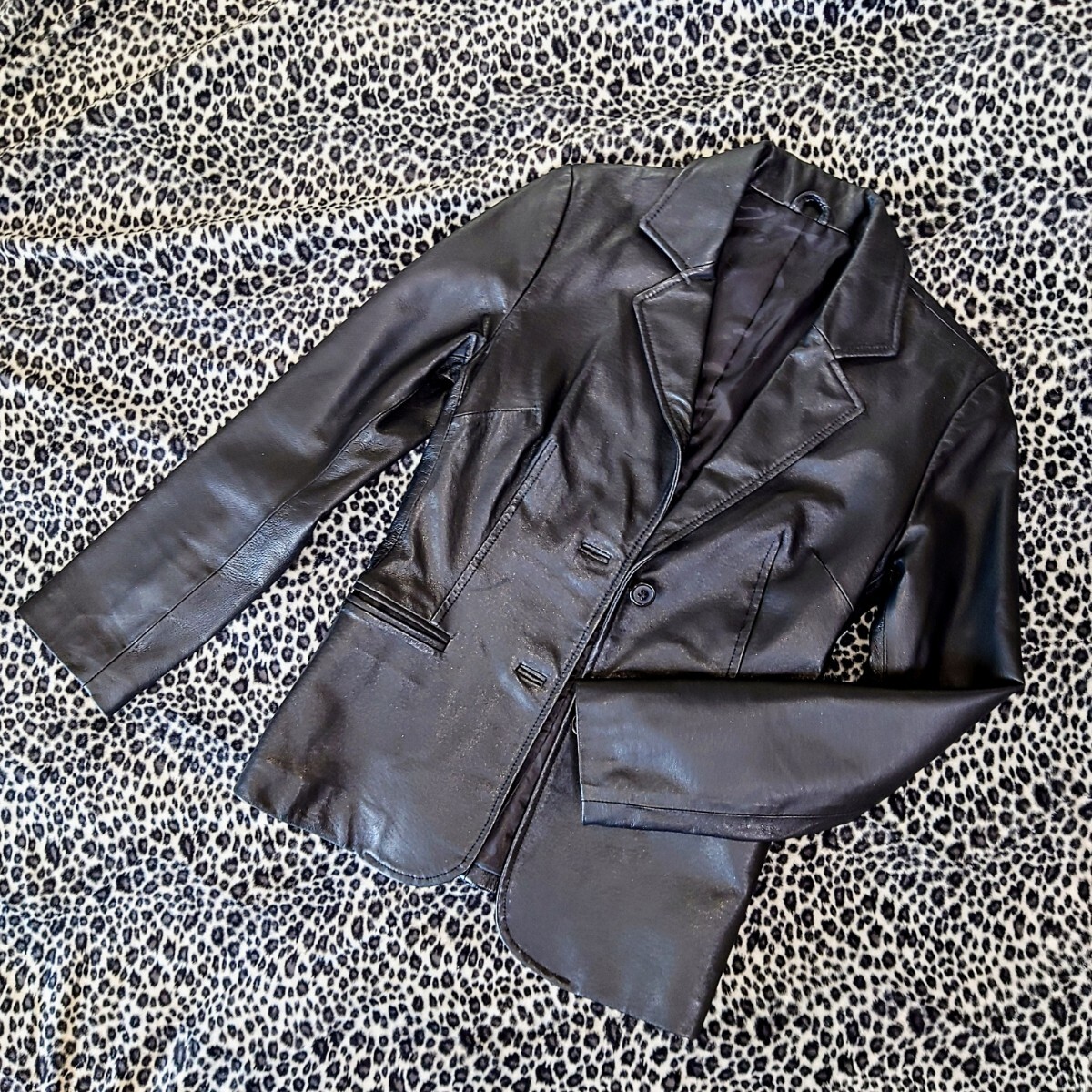 - 女王様・本革・レザージャケット・ピッグレザー・艶々・黒・光沢・レザーのスカートやロングブーツに合わせて・中古・使用感あり・愛用品
