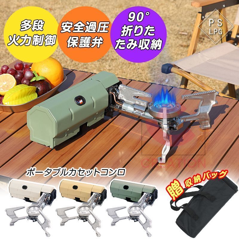 - カセットコンロ ガスバーナーキャン カードストーブ アウトドア 軽量 キャンプ用品 野外 折りたたみ型 コンパクト 専用ケース付き 調理器具