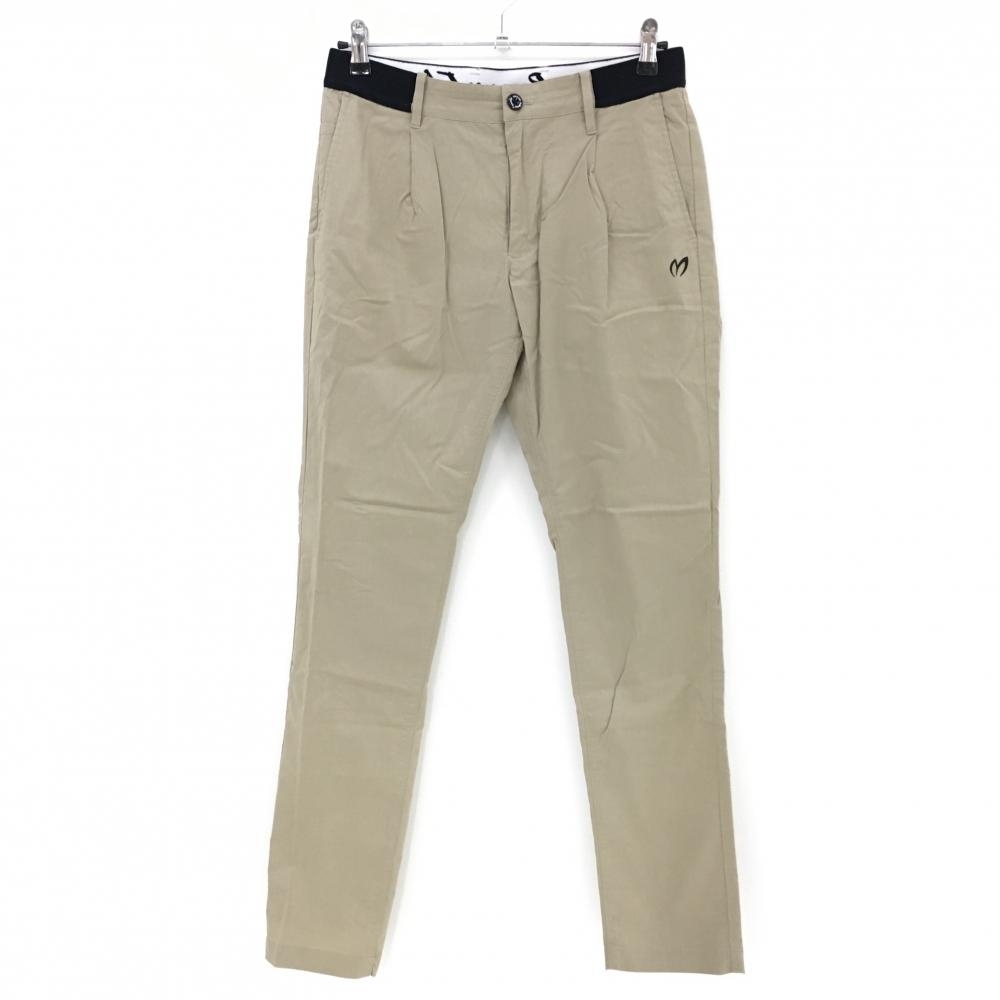> 【美品】マスターバニー パンツ ベージュ×黒 ウエスト一部ゴムロゴ ストレッチ メンズ 4(M) ゴルフウェア MASTER BUNNY EDITION