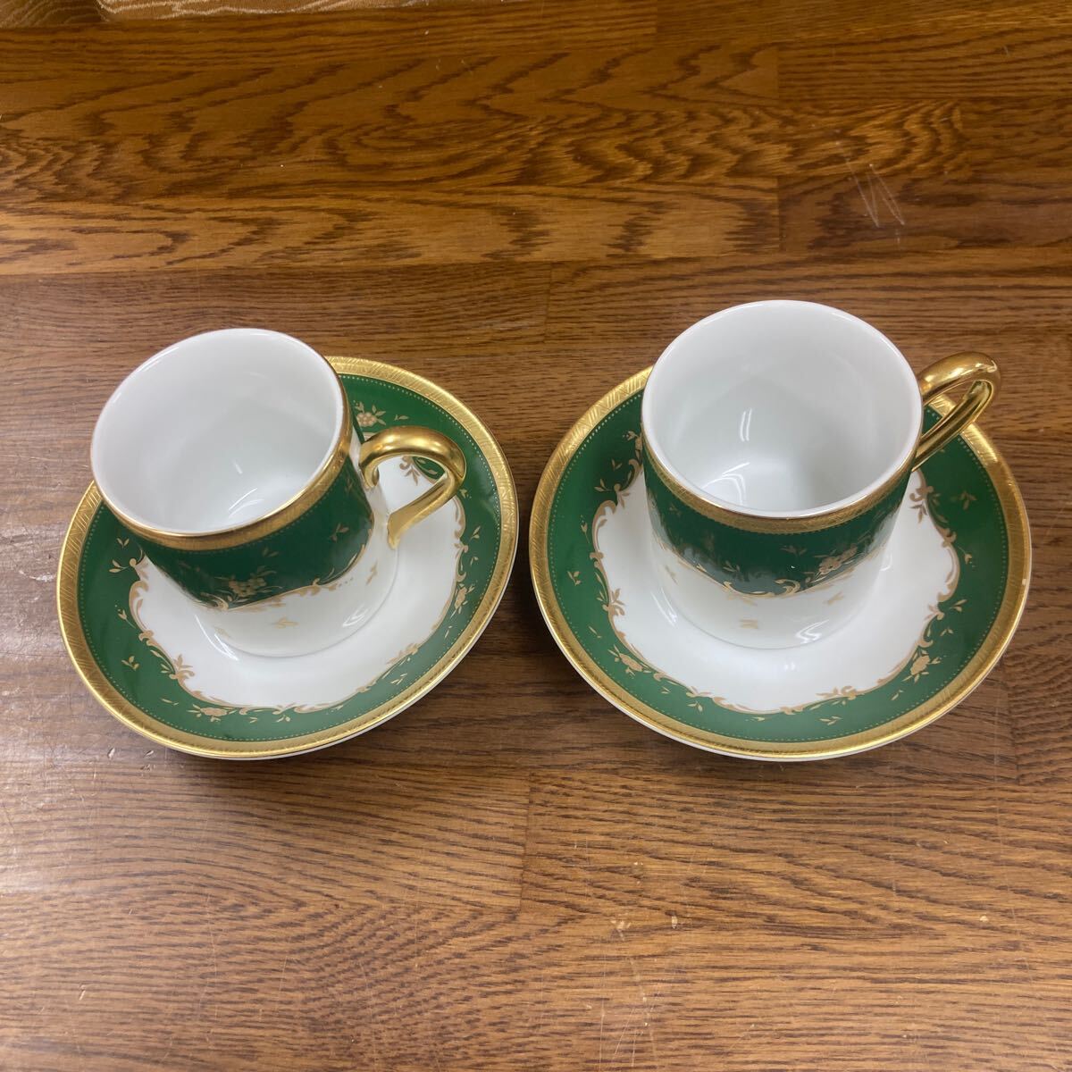- 【ナルミ デミタスカップ 2客】ソーサー グリーン 金緑 finechina カップ 金彩【B6-1④】0529+-