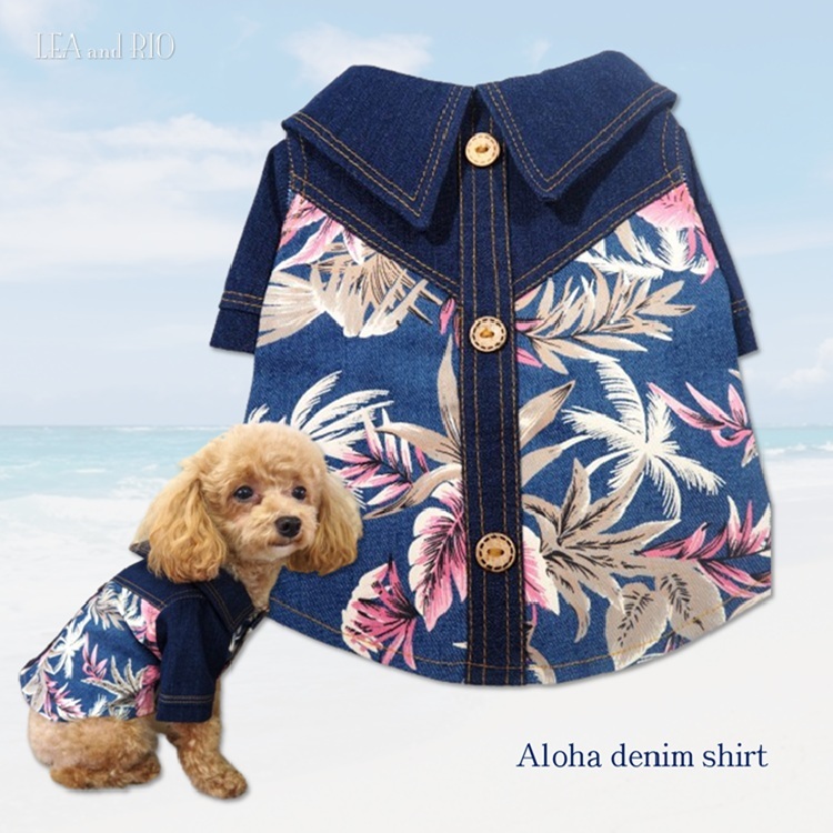 - アロハシャツ デニムシャツ トップス LB10 極小犬 パピー 超小型犬 小型犬 犬 猫 ペット 服 犬服 かっこいい ボタニカル シャツ 送料無料