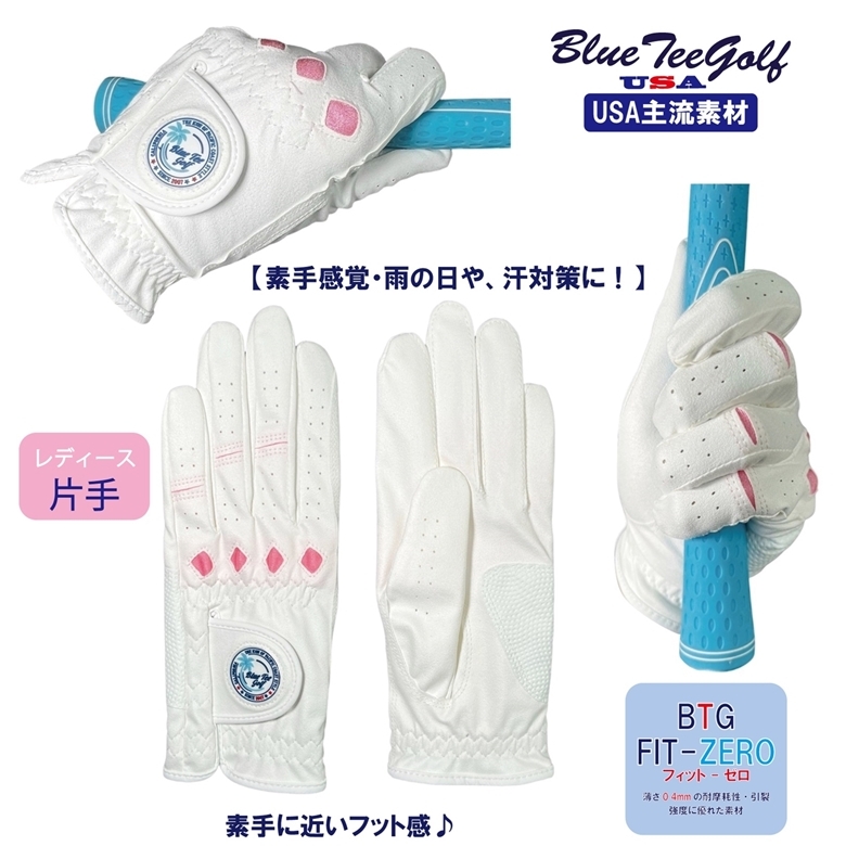 > 5枚【女性用/片手:20cm】ブルーティーゴルフ【BTG FIT-ZERO フィットゼロ】 素手感覚0.4mm 人口皮革 ゴルフグローブ ストレッチ GVNL002