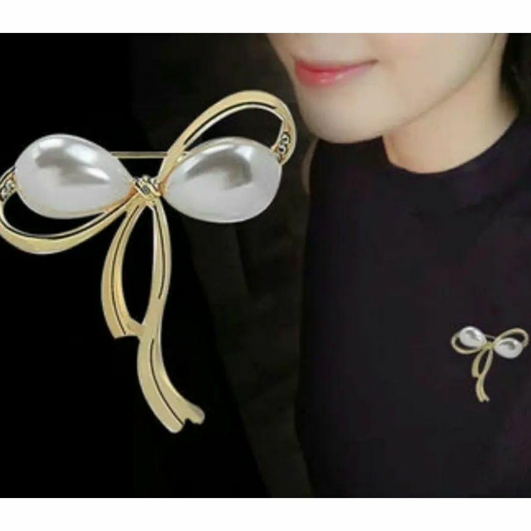 - リボンブローチ ピンブローチ コサージュ ゴールド 卒業入学 パール フォーマル