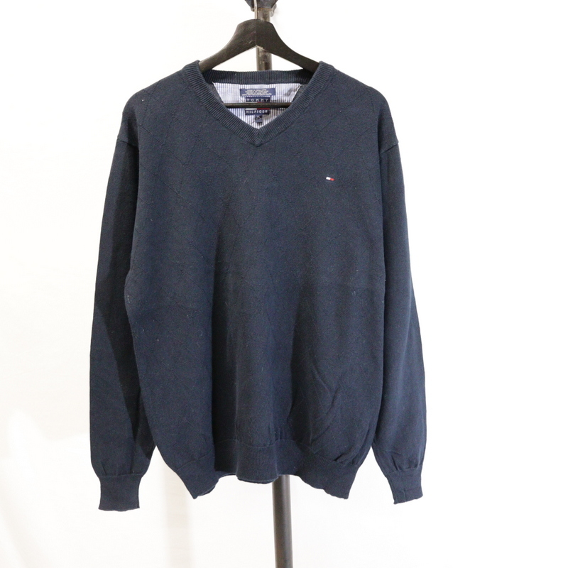 > C252 90sビンテージ トミーヒルフィガー コットンニットセーター■1990年代製 表記XLサイズ ネイビー 紺 アメカジ ストリート 古着 古着卸