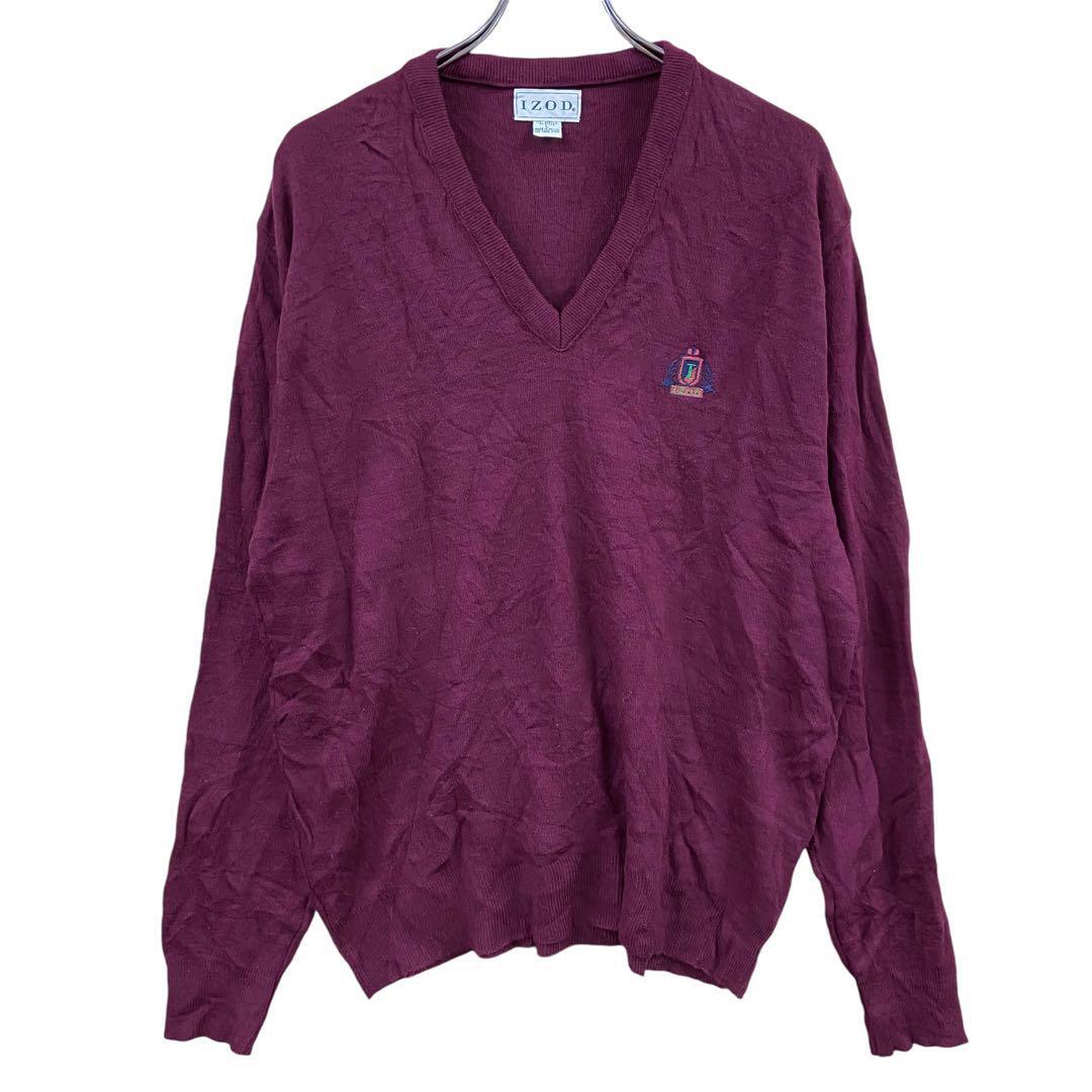- アイゾッド メンズニット えんじ色 L Vネック トラッド 秋冬【647】