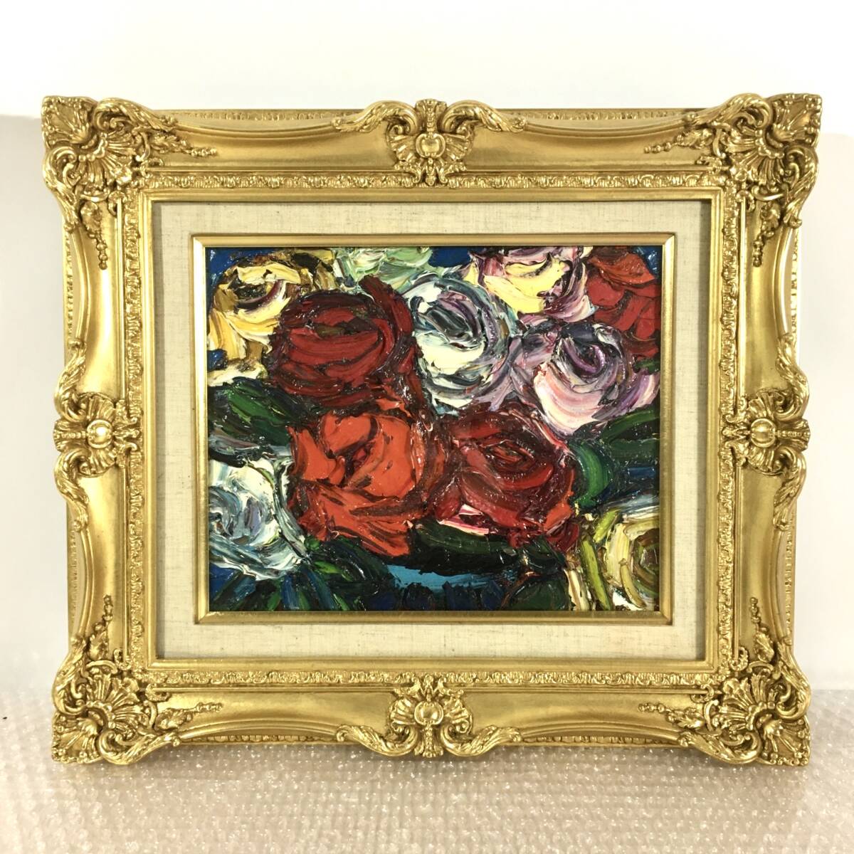 - ○北川金治 美品超傑作 「 薔薇 」 油彩 F3号 極厚塗り 絵画 油絵 バラ 真作保証品