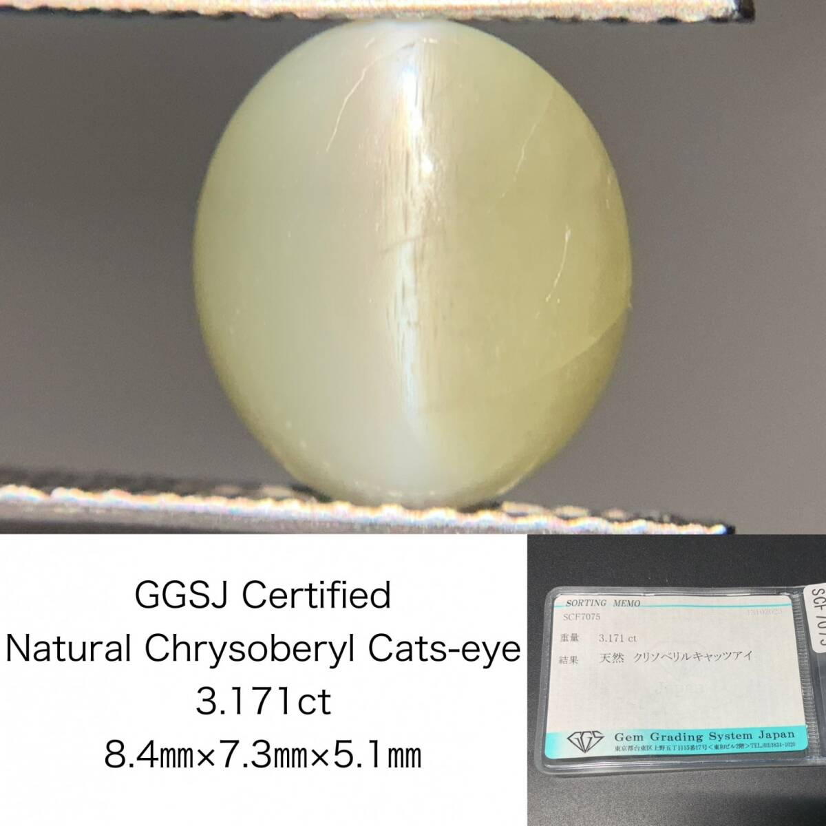 - クリソベリルキャッツアイ 3.171ct 宝石ソーティング付き 8.4×7.3×5.1 ルース( 裸石 ) 4027Y