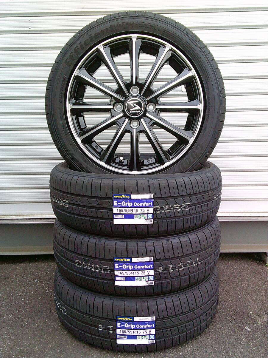 > 新品セット☆165/55R15☆ブラックポリッシュホイールセット☆ワゴンR・タント・N-BOX・ルークス・デイズ・軽自動車等☆Hm