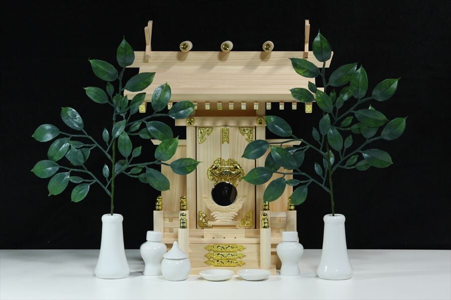 - 限定数 特価 神棚 一社 セット ■ 中神明 神具セット 10点付き 東濃ひのき 職人手作り神棚