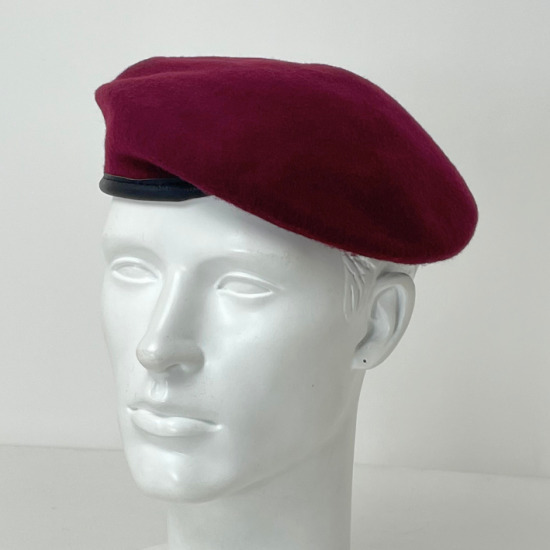 - ベレー帽 ワインレッド色 帽子 ブラック ウール フランス軍 デッドストック 頭回り表記60cm 実寸約58cm アーミー 軍物ヴィンテージ