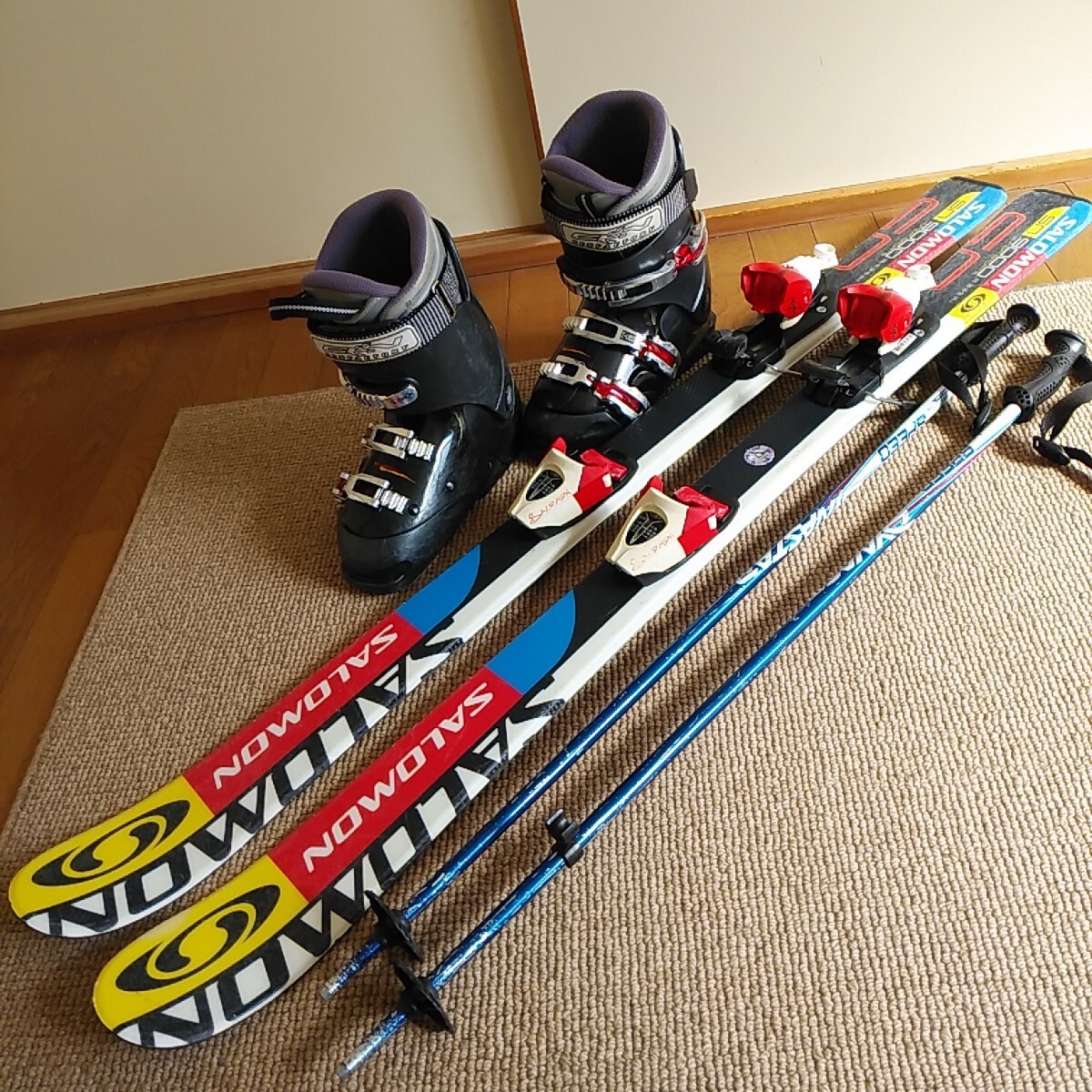 - 子供 スキー セット Salomon 板 ビンディング gen factoryブーツ dynastar ストック ジュニア 120cm 23.0 - 23.5cm 277mm キッズ 3点