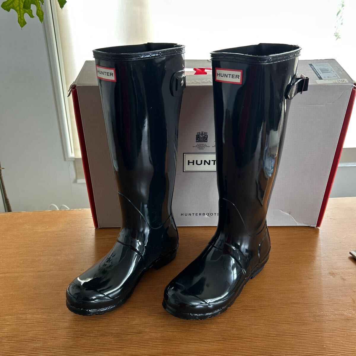 > 美品レディース ハンター HUNTER レインブーツ EU 37 US 6 UK4 23〜23.5cm ブラック 艶あり 元箱あり