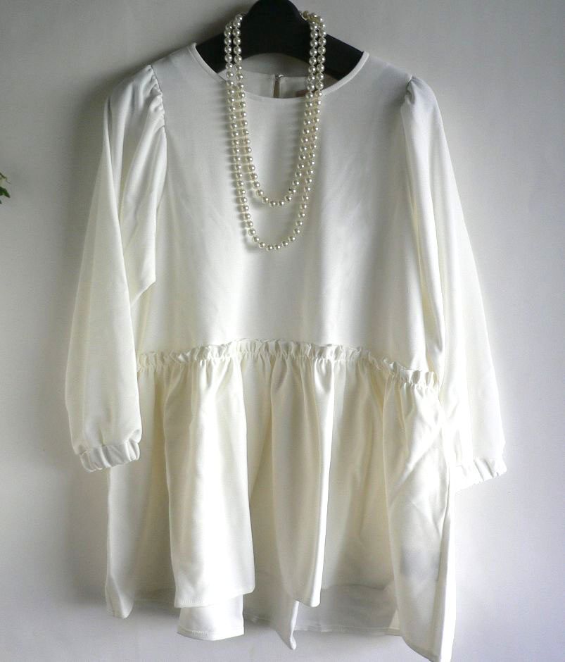 - 新品オフ白ギャザーペプラムドッキングブラウスLサイズ*卒業式入学式フォーマルセレモニー