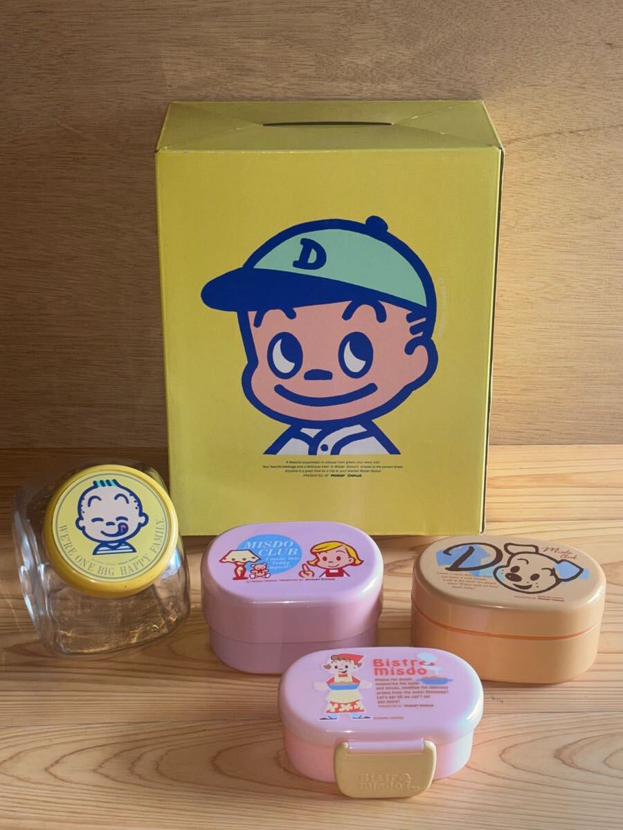 - 当時 ミスタードーナツ 原田治 非売品 ノベルティ セット 箱 お弁当箱 小物入れ vintage retoro レア
