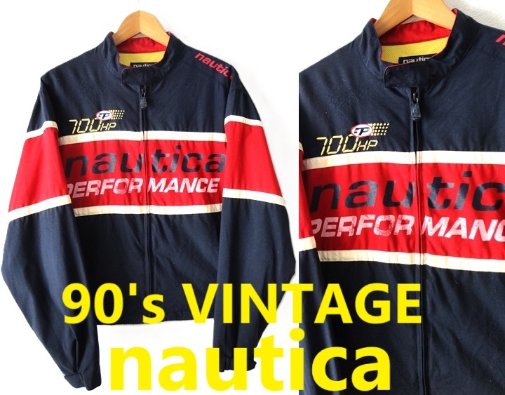 > 90's ヴィンテージ/nautica:ノーティカ ナイロン キャンバス トリコロールカラー フルジップ ジャケット/ブルゾン/Lsize/赤×紺×白