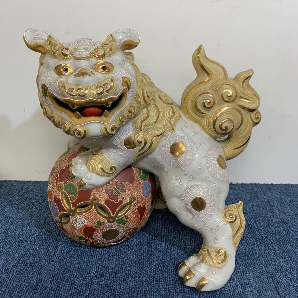 - 九谷焼 縁起物 玉乗り獅子 置物 シーサー 魔除け 狛犬 インテリア オブジェ 陶器 置物