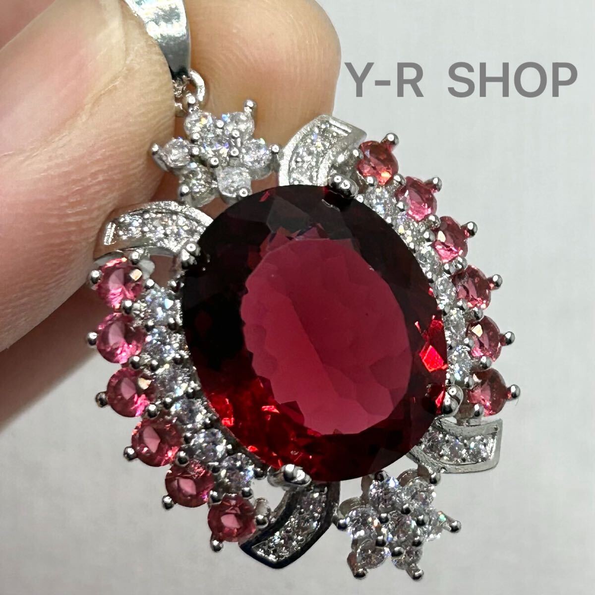 > 大粒ルビーとキュービックジルコニア のゴージャスペンダントトップ ★レディースネックレスシルバー925刻印カラーストーン新品宝石Y-Rcz