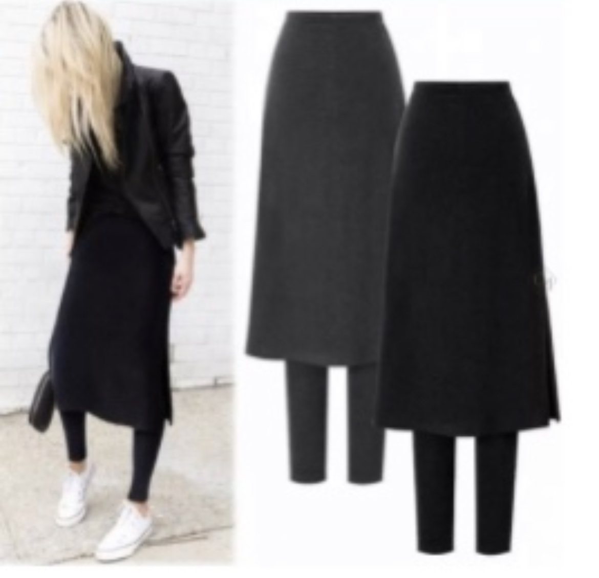 - 【新品】スカート付き レギンス 黒 裏ボア付 L