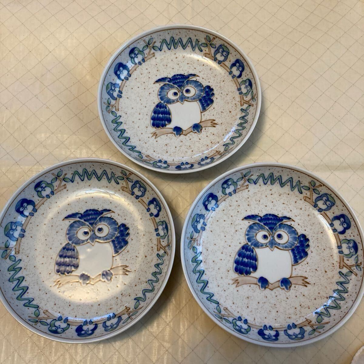 - フクロウ 中皿 3枚 未使用 送料無料 京窯 食器 皿 プレート 梟 縁起物 陶器 和食器 和洋中OK 深さあり スタッキング