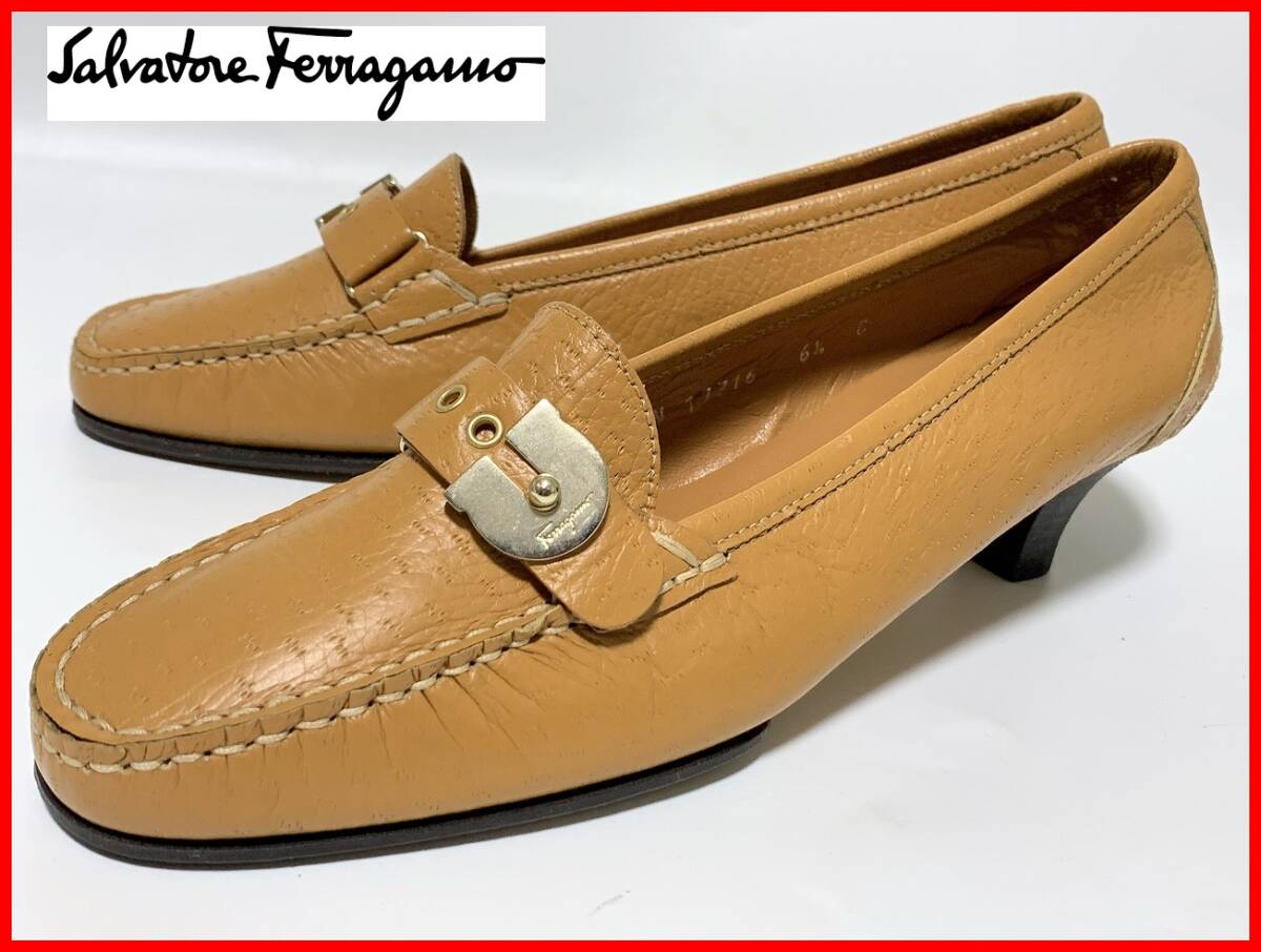 - 即決 Salvatore Ferragamo フェラガモ 6.5≒23.5cm パンプス 茶 ブラウン レザー レディース F