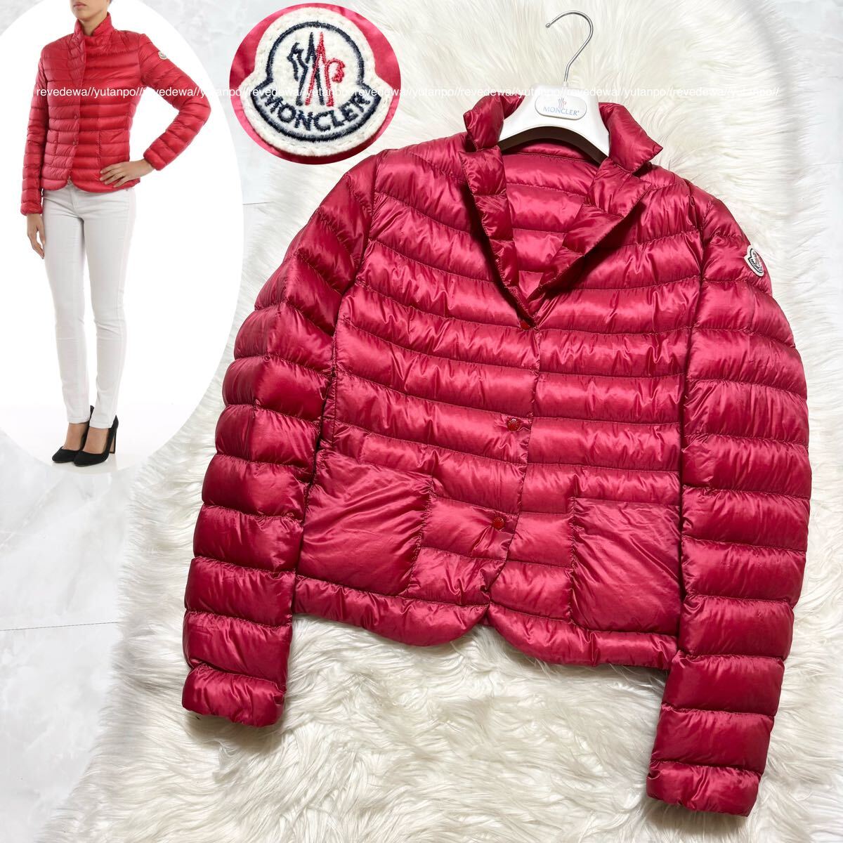 > 本物 モンクレール Lisette テーラード ライト ダウン ジャケット 赤 1 MONCLER