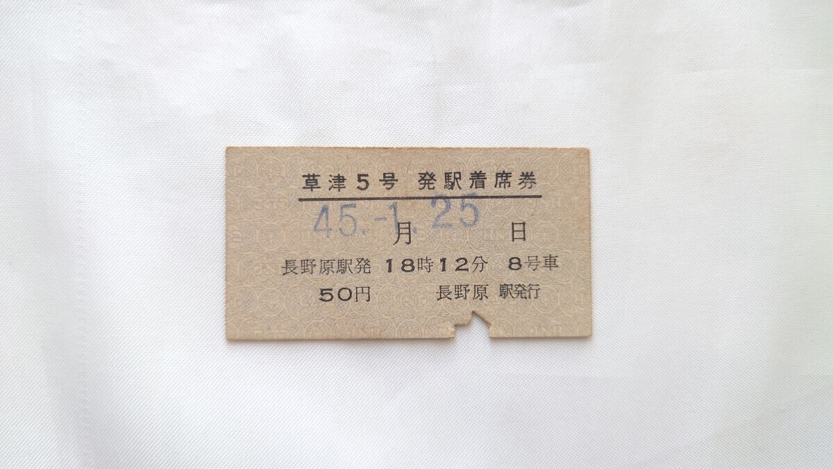 - ▼国鉄▼長野原駅発 草津5号発駅着席券▼A型硬券昭和45年