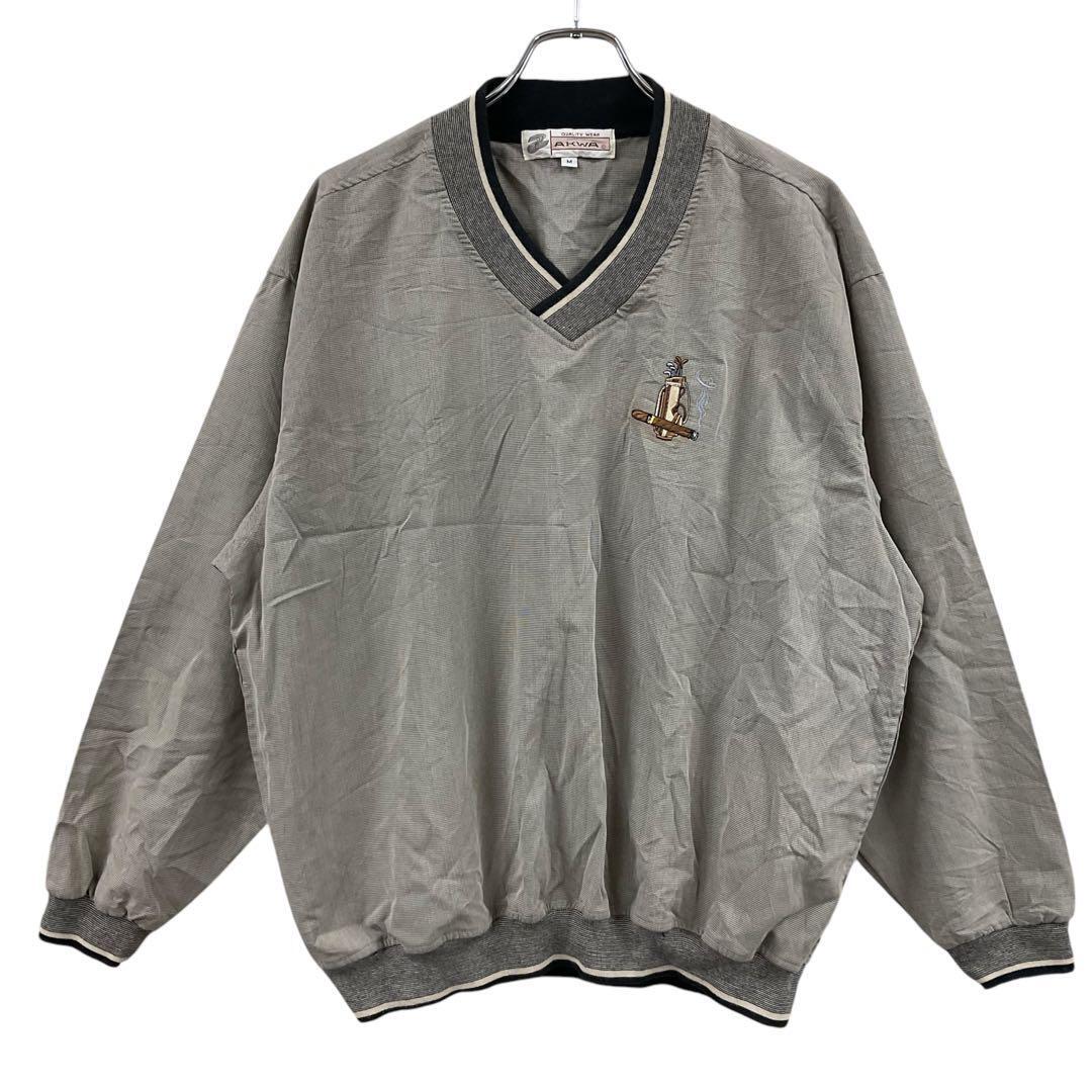- 美品アクワ メンズ M プルオーバー 刺繍ロゴ Vネック ゴルフ【1223】