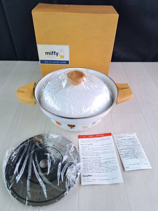 - 未使用品 保管品 ミッフィー エナメルキッチンウェア 27㎝ オールインワン スノコ付き ホーロー鍋 両手鍋