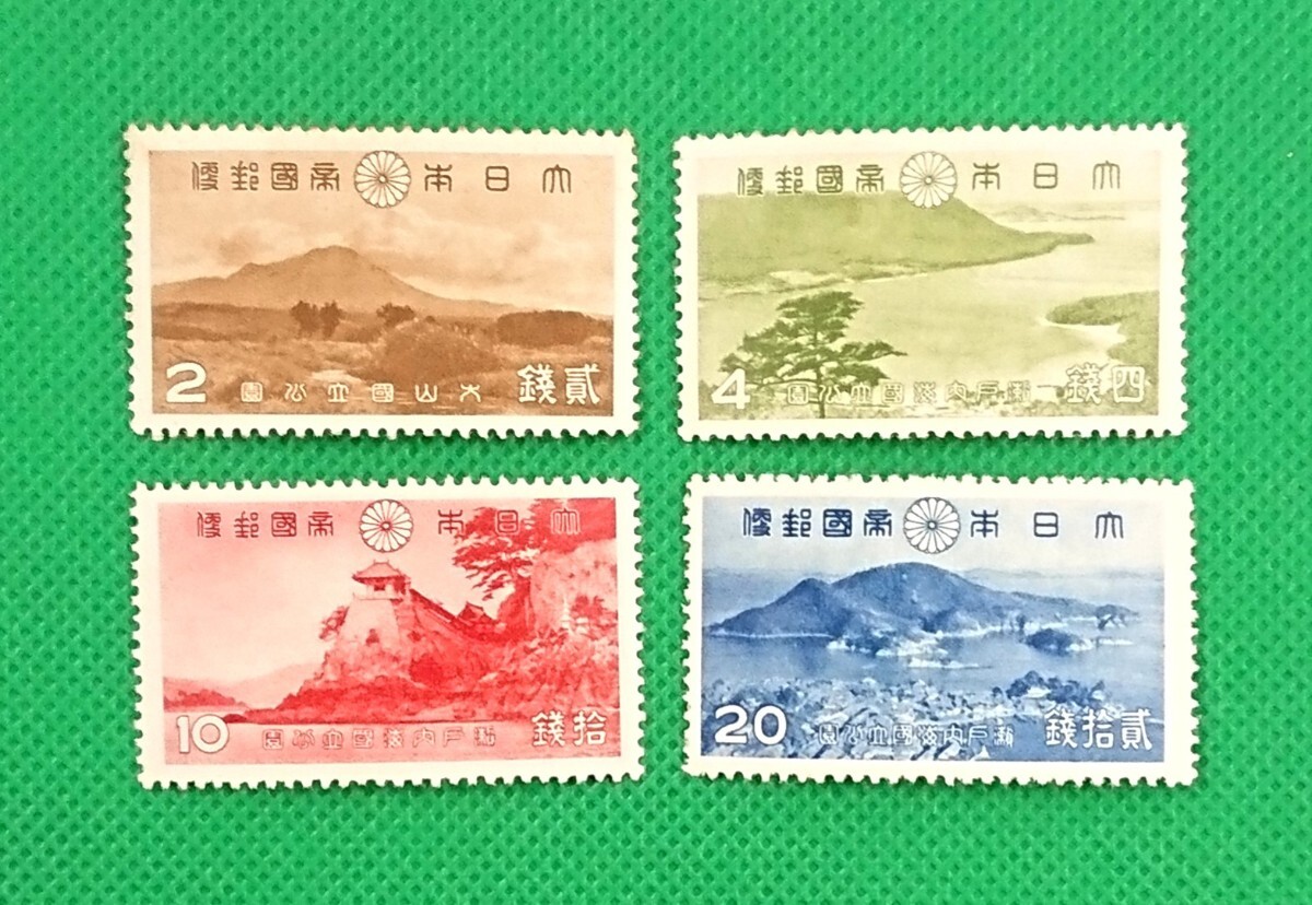 - 稀な高品質!大山・瀬戸内海国立公園/4種完品/NH/極上美品/シミ無/シワ無/糊艶良好/1939年/カタログ価格8,220円/№.211