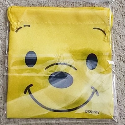 - 【未使用】くまのプーさん『ミニ巾着袋』黄色《携帯性抜群!小物入れに最適!》