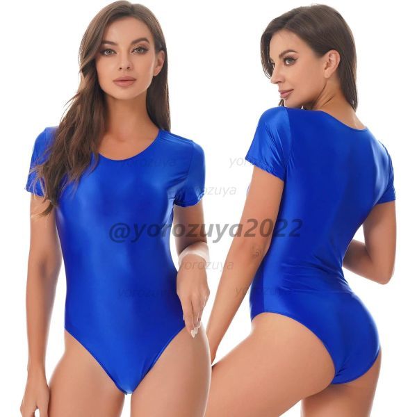 > 102-406-26 光沢 ツヤツヤ フルバック 半袖 ハイレグ レオタード【ブルー,Lサイズ】コスプレ イベント セクシー 仮装 レースクイーン.2
