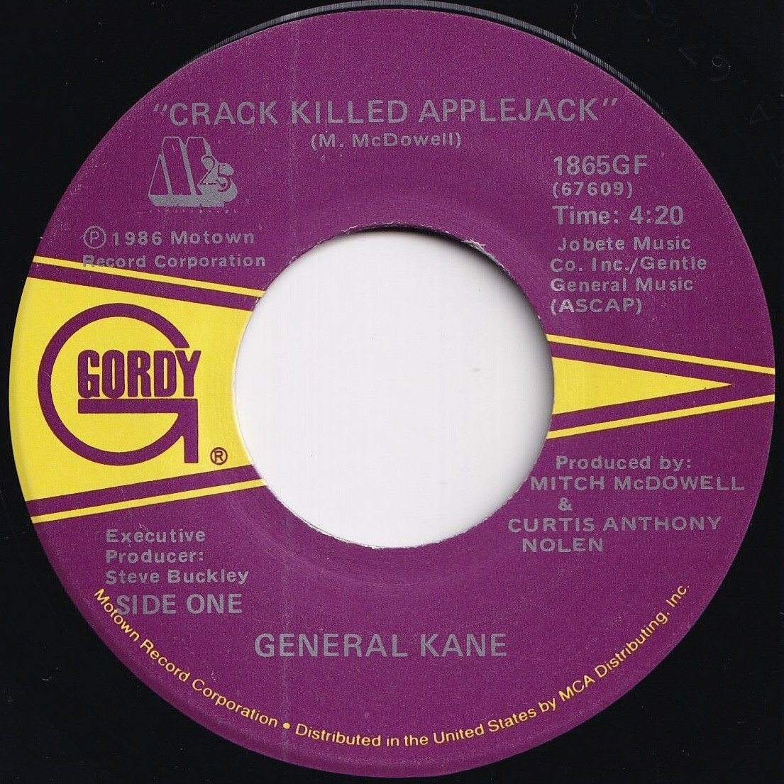 > General Kane Crack Killed Applejack / Applejack's Theme Gordy US 1865GF 209717 HIP HOP R&B レコード 7インチ 45