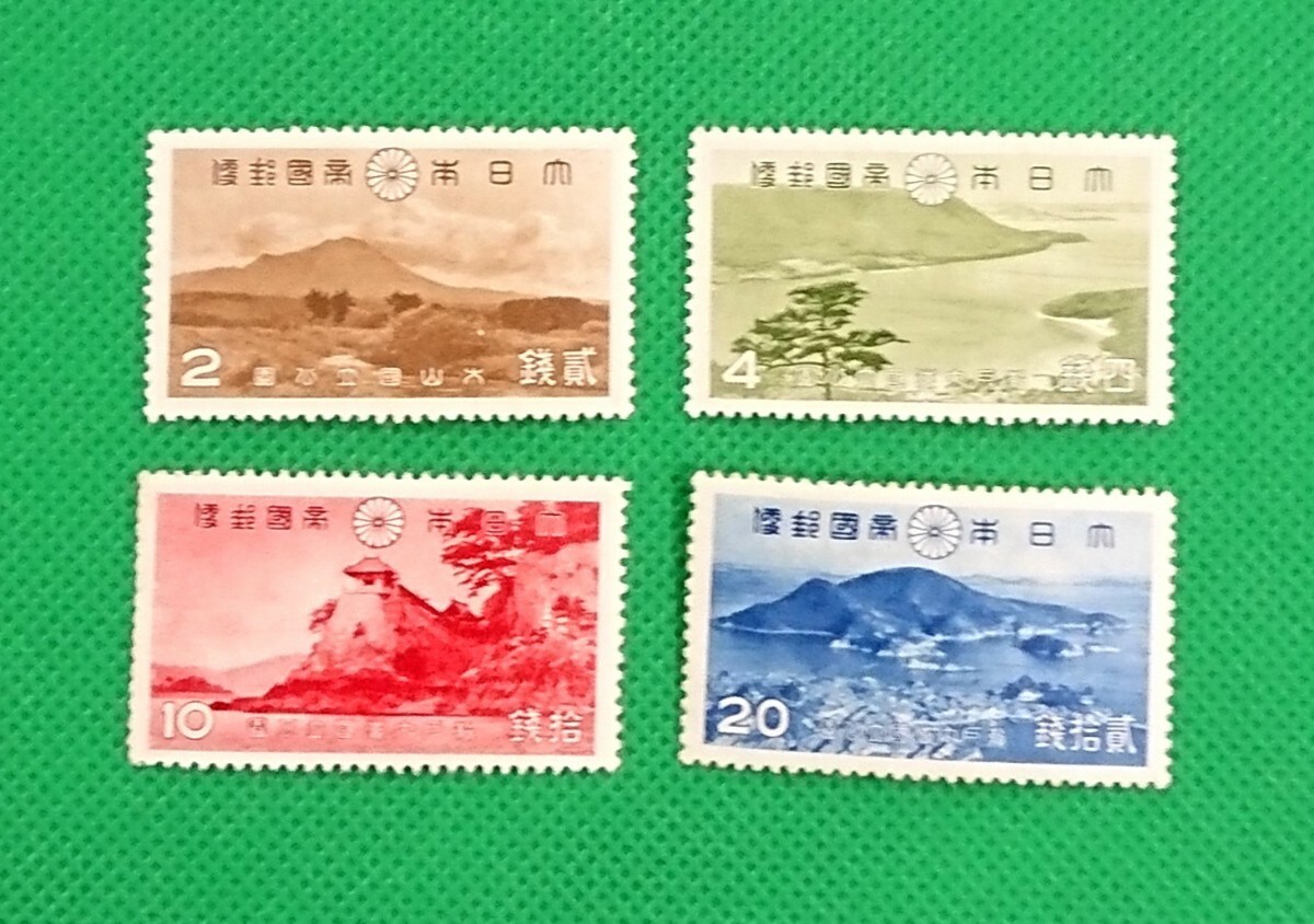 - 稀な高品質!大山・瀬戸内海国立公園/4種完品/NH/極上美品/シミ無/シワ無/糊艶良好/1939年/カタログ価格8,220円/№2523