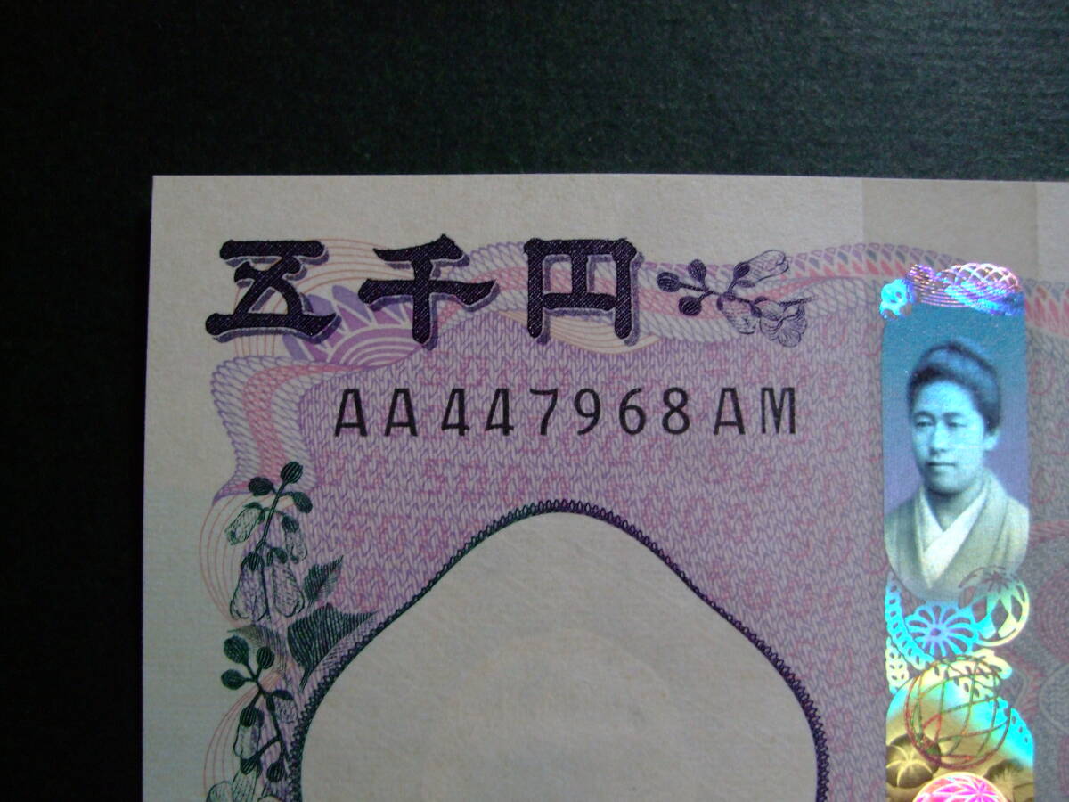 - 【即決】 トリプルA AAA券 AA - AM券 新紙幣 新五千円札 津田梅子 5000円札 ピン札 AA券 No55
