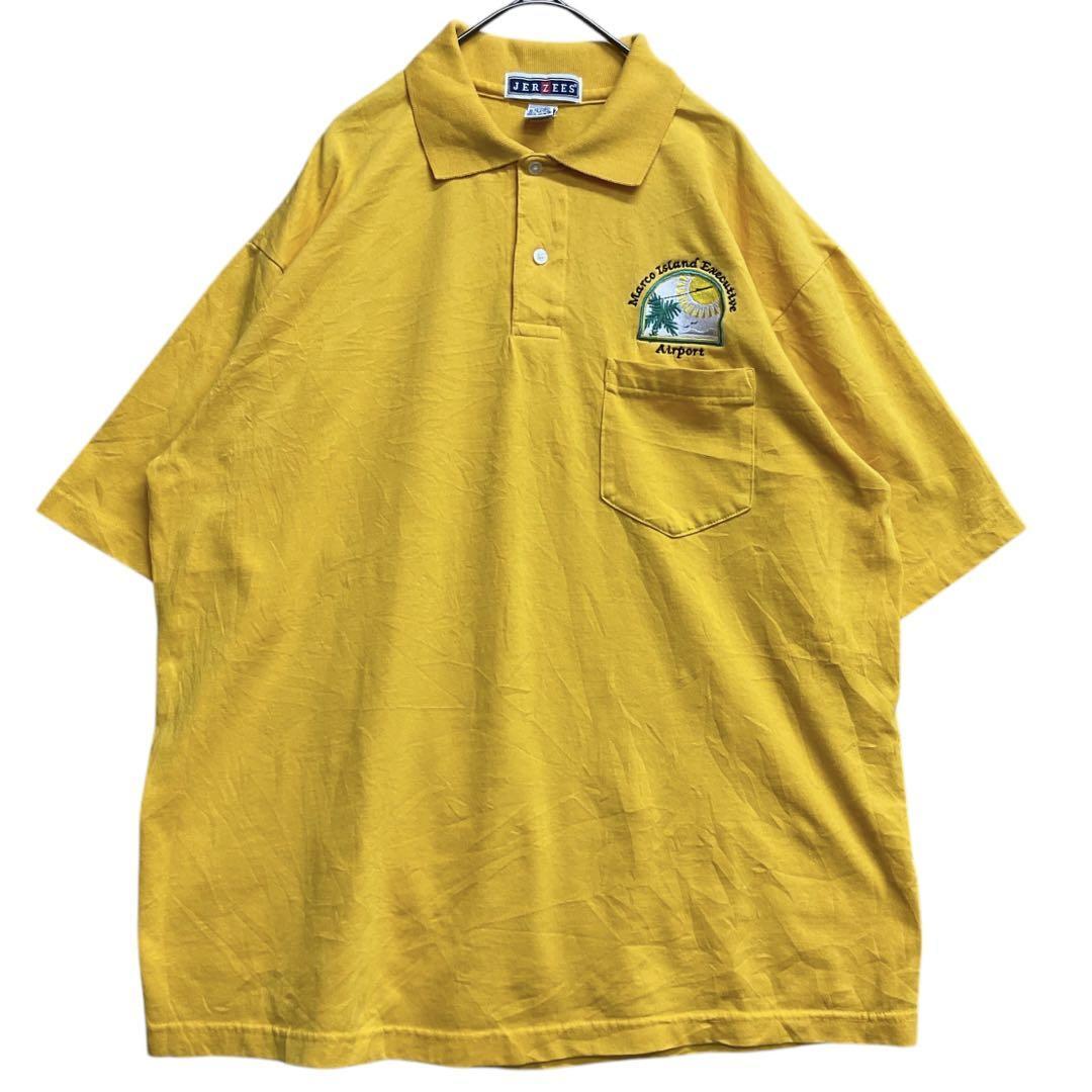 - ジャージーズ メンズポロシャツ L 黄色 アップリケ ワッペン 刺繍【2337】