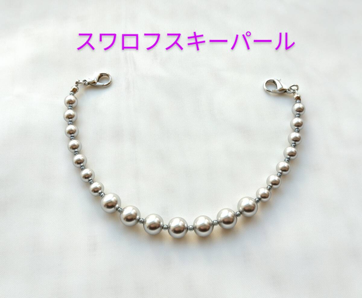 - 羽織紐 スワロフスキーパールのライトグレーの羽織り留め 羽織りヒモ