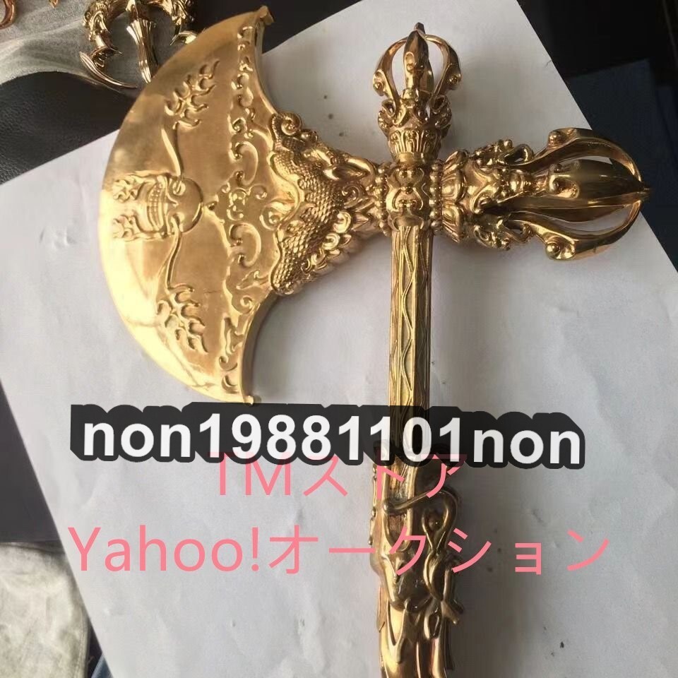 - 密教法具★ 極上品 鉞斧 寺院仏具 銅製 磨き仕上げ 長さ33cm
