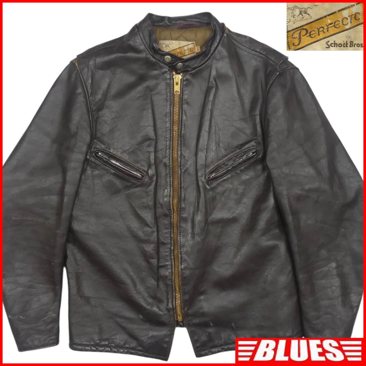 - 即決★アメリカ製 Schott★メンズ XXL レザーライダースジャケット ショット 牛タグ 前期 USA 44 茶 革 立襟 70’s ヴィンテージ
