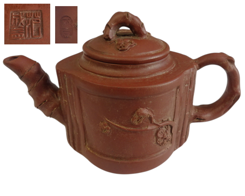 - 中国美術 范成益 在銘 梅花文 紫砂茶壺 紫泥 急須 紫砂 茶道具 唐物 煎茶道具 茶器 中国宜興 唐物 朱泥 茶壺 後手式 紫砂壺 R702D0272