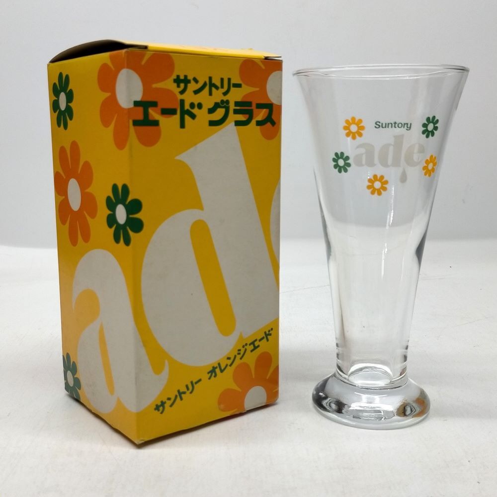 - 当時物 SUNTORY ade サントリーエード ノベルティーグラス 未使用品 トールグラス 足つきグラス 昭和 レトロ ポップ