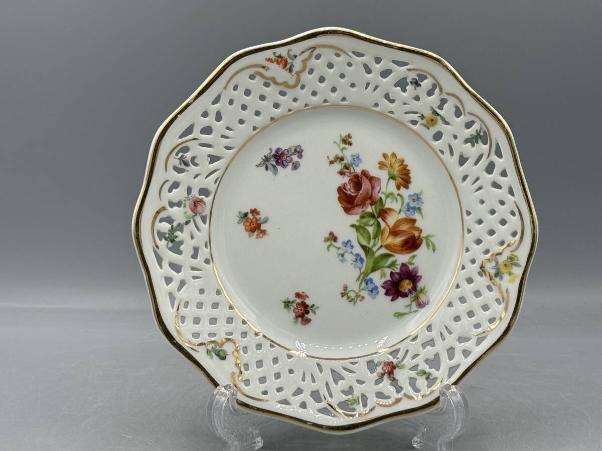 - ドレスデン ピアス フリル 透かし 花 飾り皿 皿 (#761)