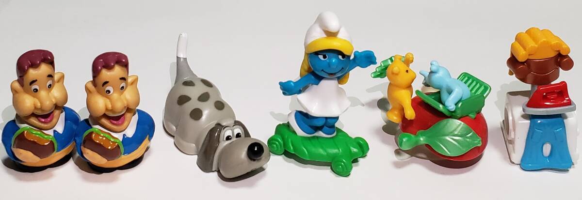 - キンダーサプライズ オマケ フィギュア 5種 6個セット ハンバーガーを食べる男性 ドッグ スマーフ 犬 KINDER SURPRISE