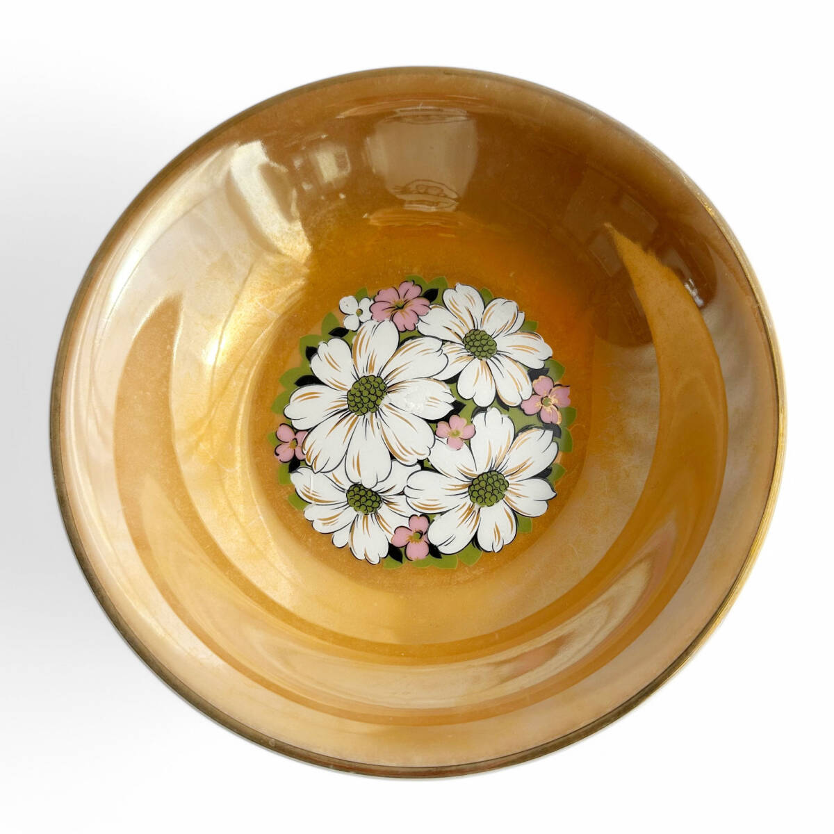 - H7-387 レトロ オーロラ 丸皿 ボウル 食器 花柄 オレンジ ラスター彩
