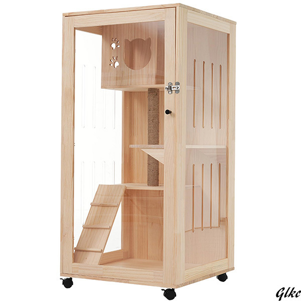 - 【木製のフレームでインテリアにも調和しやすいデザイン】 ペットケージ 猫ケージ キャットケージ ハンモック付き 木製 3段 多頭飼い