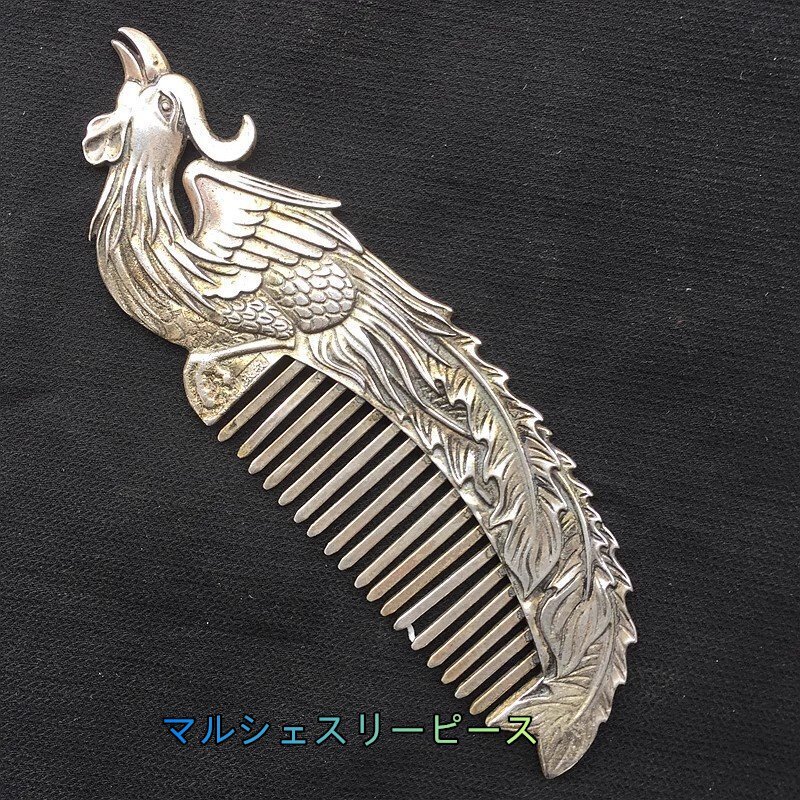 - 珍品 旧蔵 超美品! 鳳紋図 鳳櫛 鳳くし 金属 装飾 収蔵品 鑑賞 中国美術品コレクション