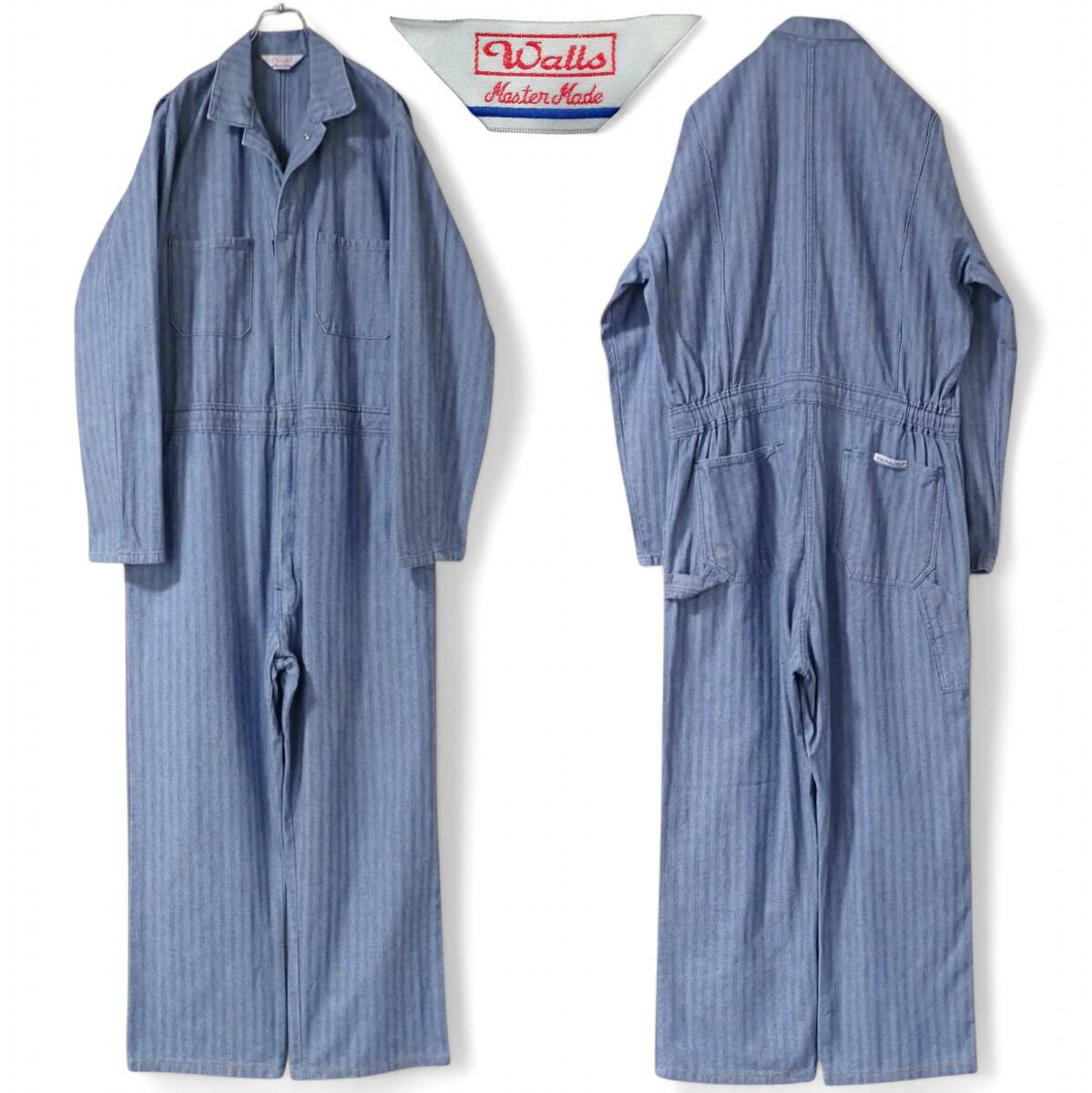 - 6415/Walls ヘリンボーン ツナギ●ダブルジップ カバーオール オーバーオール オールインワン ジャンプスーツ ワークウェア 古着