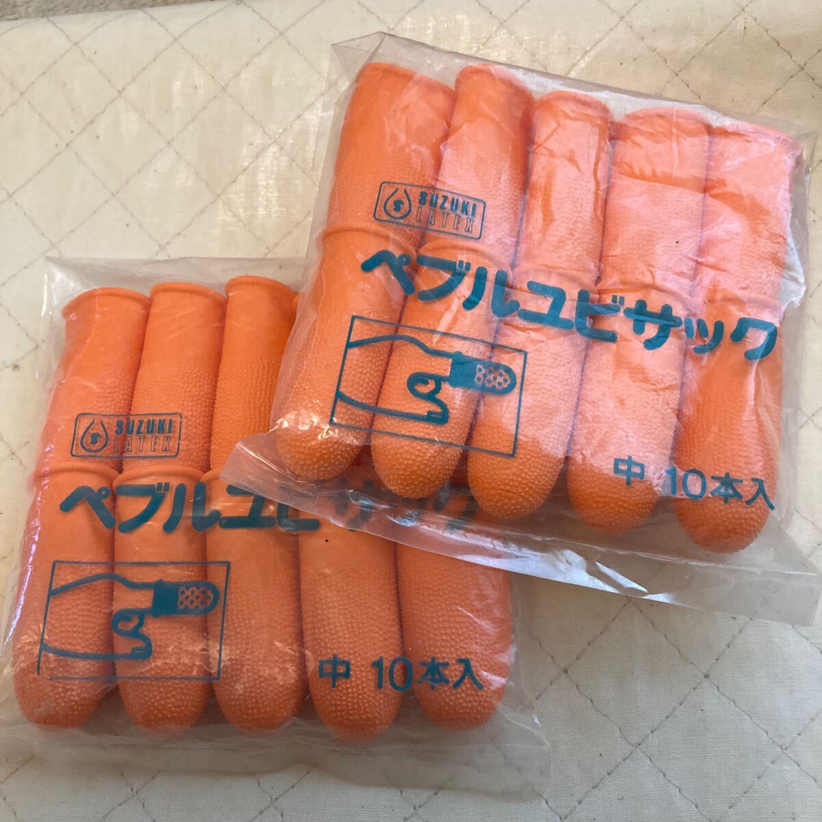 - 鈴木ラテックス ペブルユビサック 中 10本入 2袋 未使用 送料無料 オレンジ ゴム製 文房具 事務用品