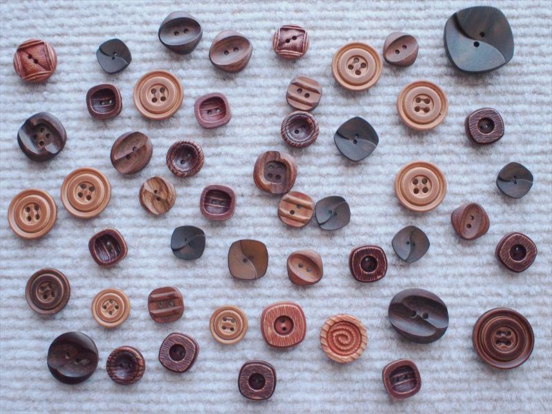 - レトロビンテージ手芸雑貨*ボタン・木彫風・Φ13~26㎜・49個セット☆パーツデコ人形装飾素材ハンドメイド