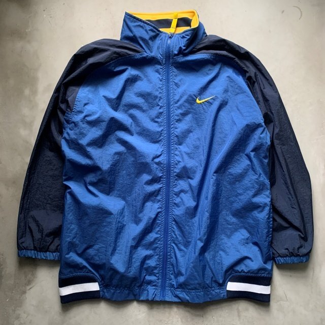 - 【S/M】NIKE ジップアップ ナイロンジャケット ブルー 青■ビンテージ オールド 古着 90s ナイキ ボーイズ キッズ ウインドブレーカー
